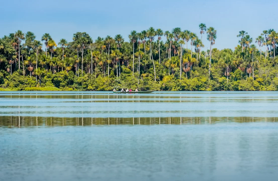 The lake is home to hundreds of macaws, parrots, and parakeets, and we may spot black caimans, herons, cormorants, wild ducks, swallows, and even a family of river otters.