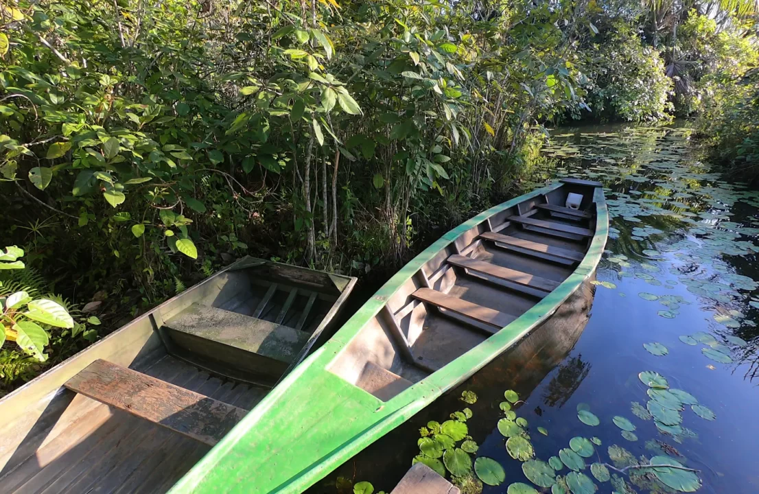 We choose to leave at dawn by boat to reach Sandoval Lake, located within the Tambopata National Reserve.